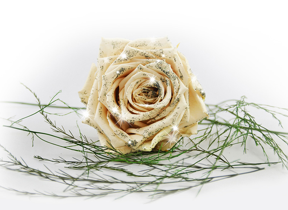 Natural, soft and fragranced flowers are preserved with genuine famous Antwerp diamond crystals. These everlasting blooms are rich in color and will stay that way if you keep them away from water and humidity.