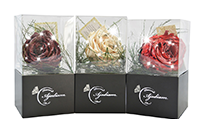 Each jeweled rose comes in a protective case and has an LED light for displaying the brilliant diamonds. Although the gems sparkle on their own, the lamp allows you to really see them shine. They are available in three colors – Fire Red, Baccara Style Red (dark red) and Champagne White. With an irresistible price that fits everyone's budget, these are bestsellers that can't be found anywhere but through ....
